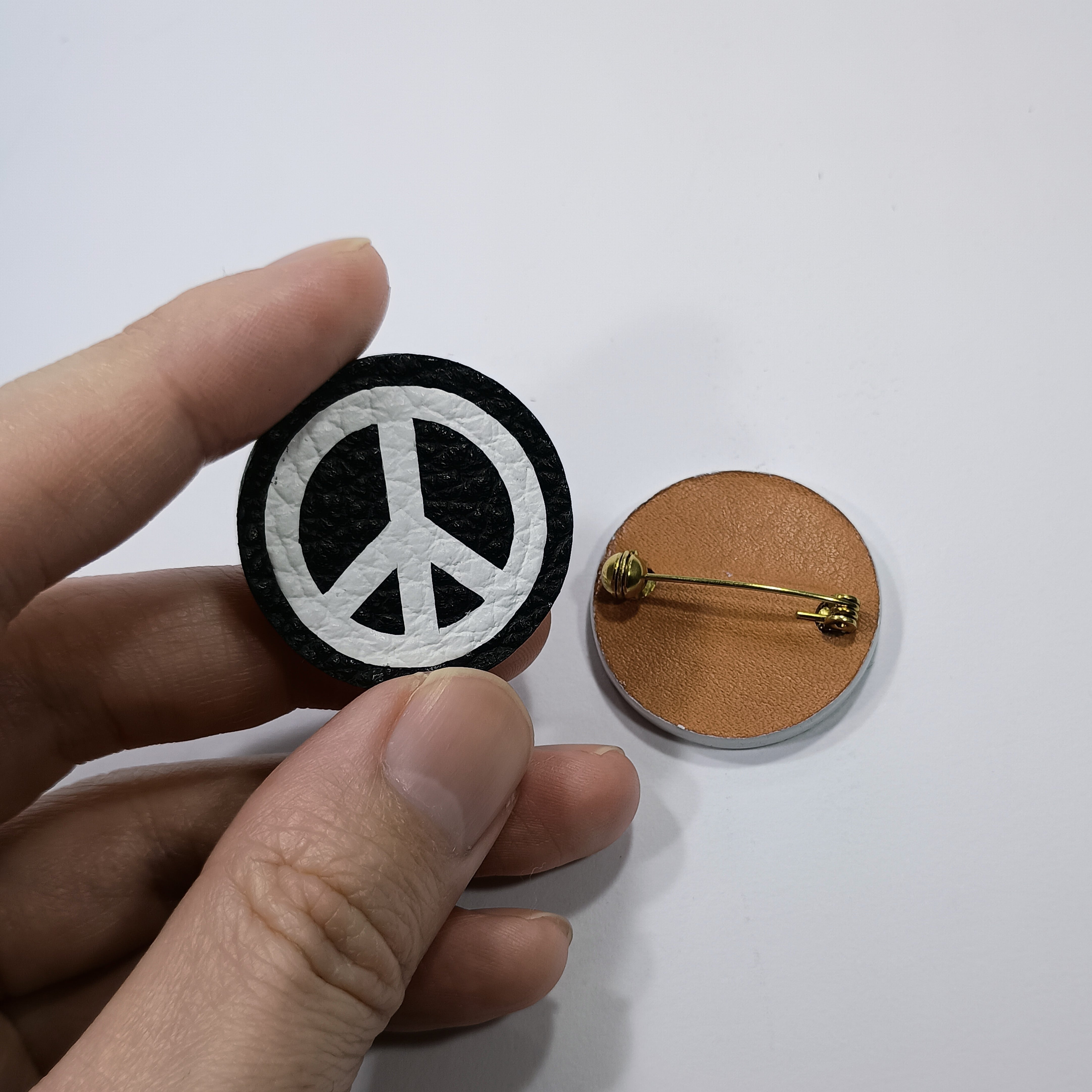 Leather Inlay Peace 32mm Brooch